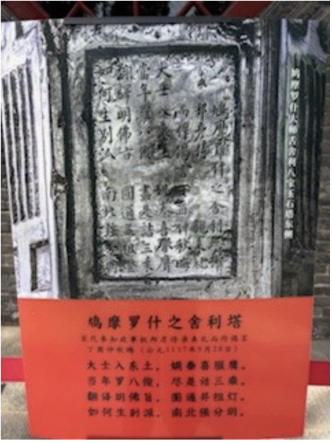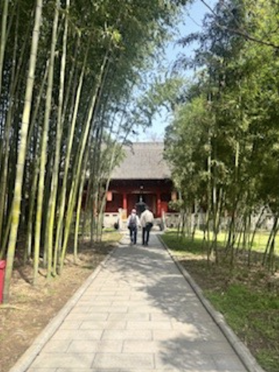 最初に訪れたのは、西安郊外にひっそりと佇む草堂寺(そうどうじ)だ。ここには、偉大な訳経僧・鳩摩羅什[注1]という僧のストゥーパ(仏塔)がある。竹林が鮮やかな赤いお堂に生えて実に美しい境内だった。